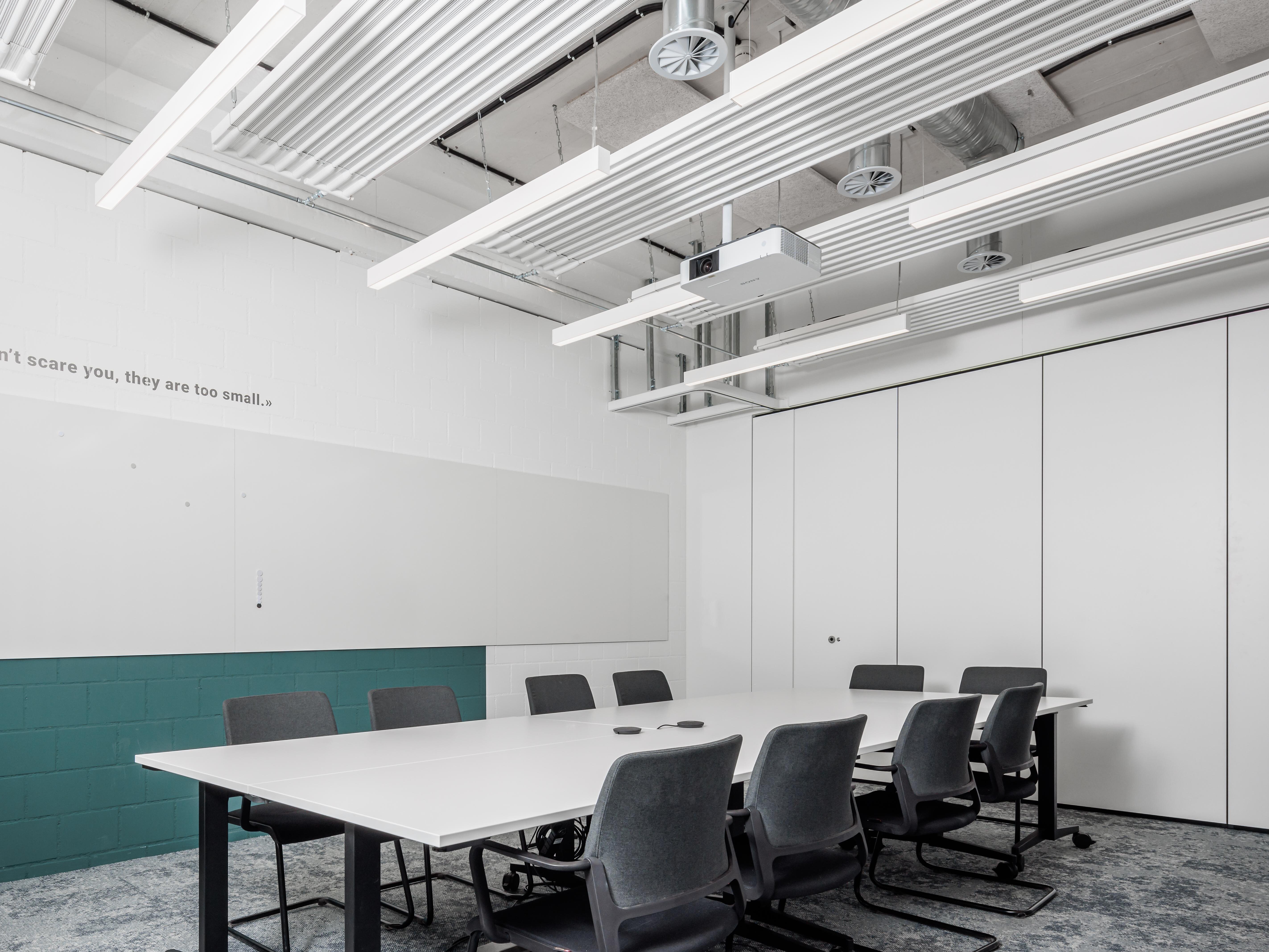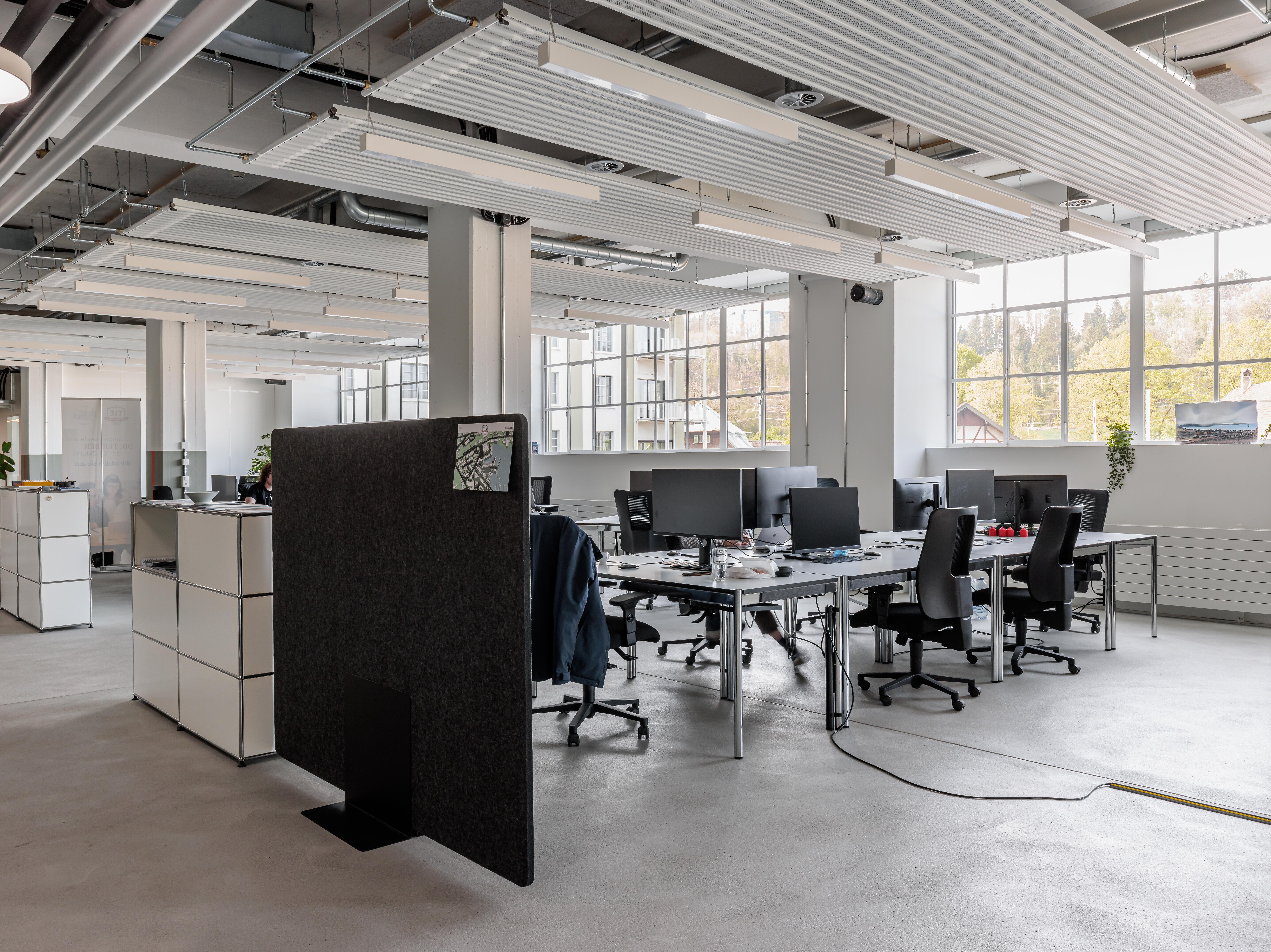 Die Deckenstrahlplatten wurden in zwei Bauetappen 2020 und 2022 montiert. Insgesamt installierte Zehnder rund 800 lfm gelochte Deckenmodule der neusten Generation ZFP mit einer Fläche von ca. 580 m2.
