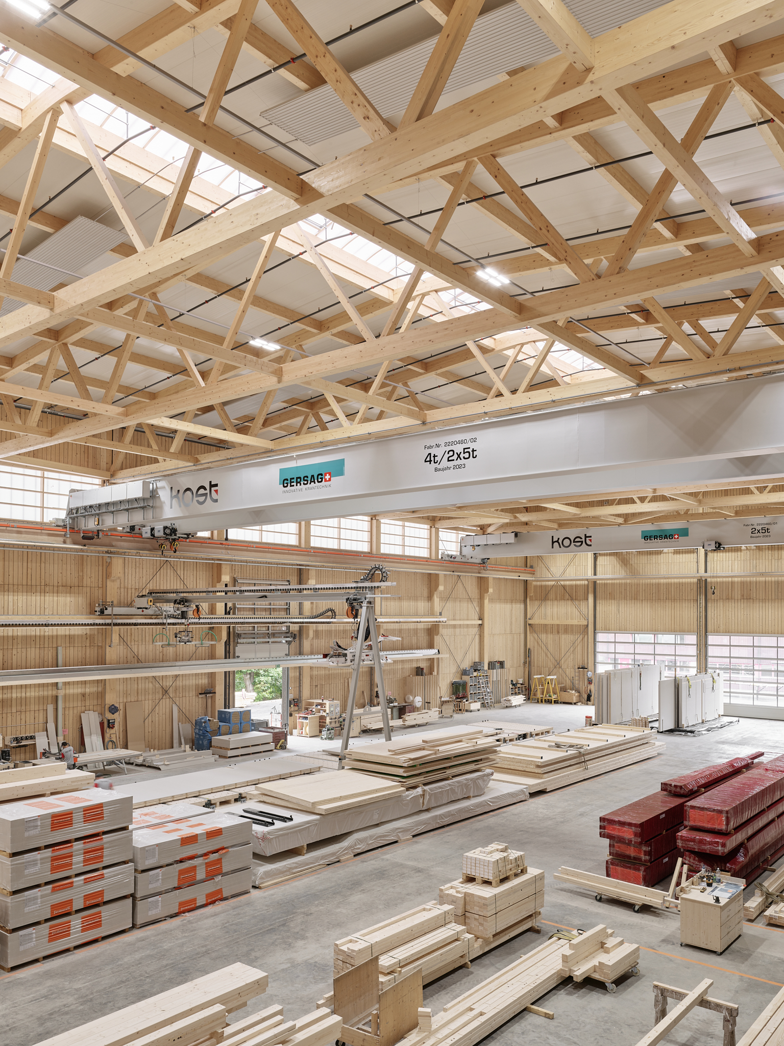 Die Firma Kost AG in Küssnacht am Rigi bezog im August 2023 in die neue Werkhalle, in welcher Deckenstrahlplatten ZIP installiert wurden. Um die beeindruckende Optik mit den sichtbaren Holzbalken nicht zu beeinträchtigen, wurden die Elemente nahezu unsichtbar in die Decke integriert.
