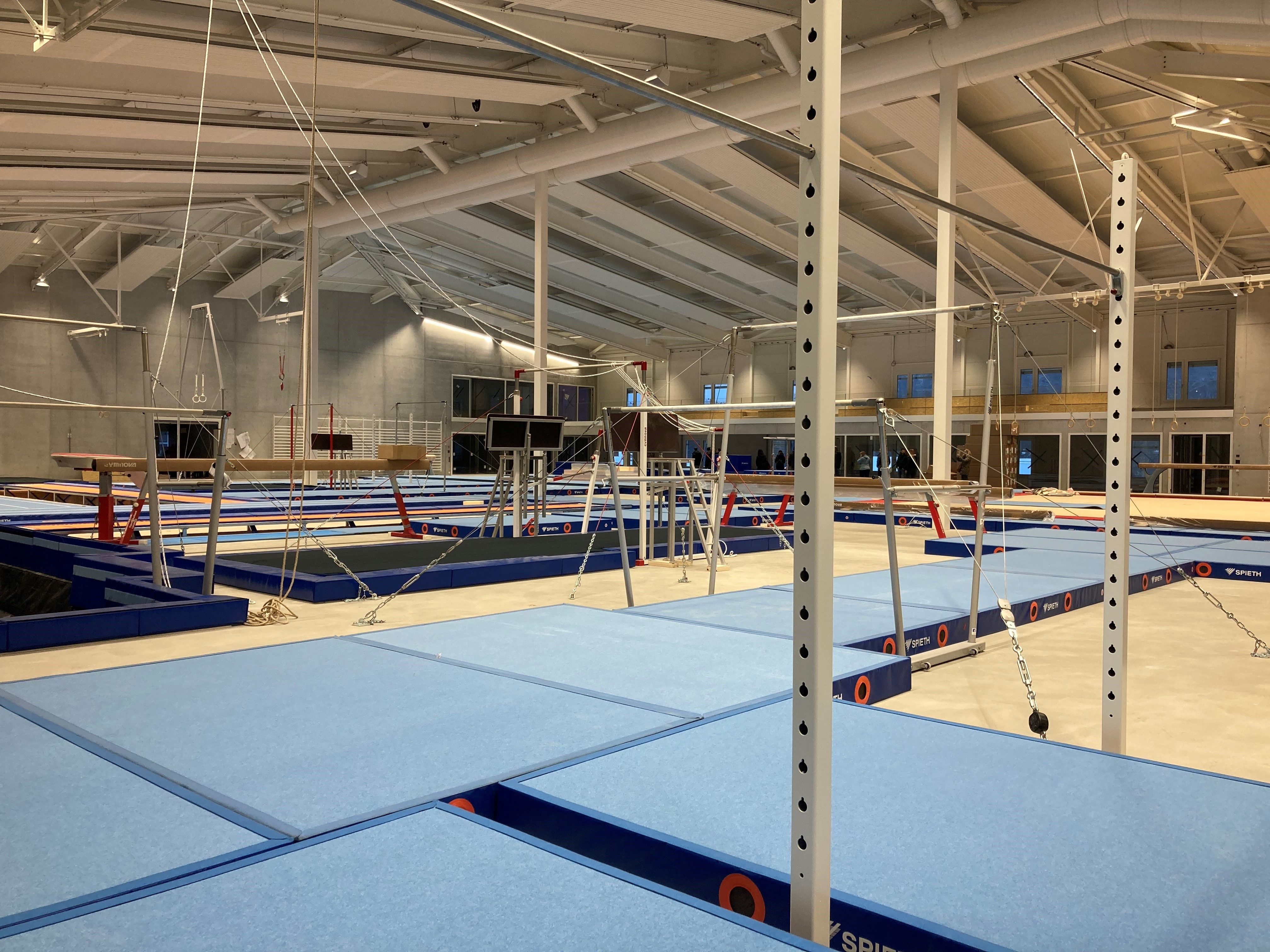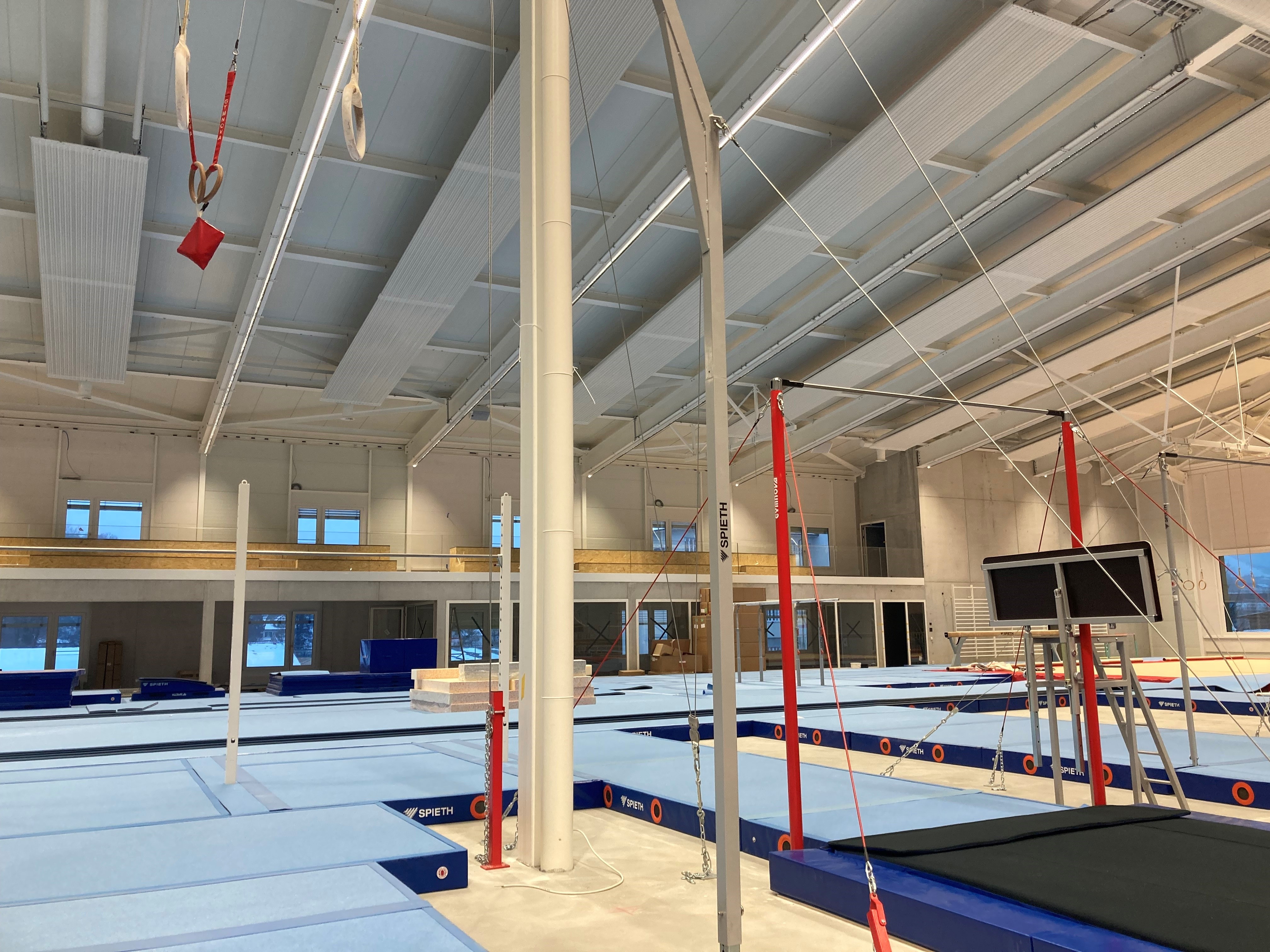 Zwischen Traitafina und Klettersporthalle in Lenzburg entstand im Jahr 2022 das neue Turnzentrum für den Aargau. Neben Tanz-, Kraft-, Physio- und Erholungsräumen, einem Schulzimmer für Förderunterricht und den Geschäftsräumen des ATV ist das Herzstück die Trainingshalle: 1900 Quadratmeter und bis zu 300 Tribünenplätze.